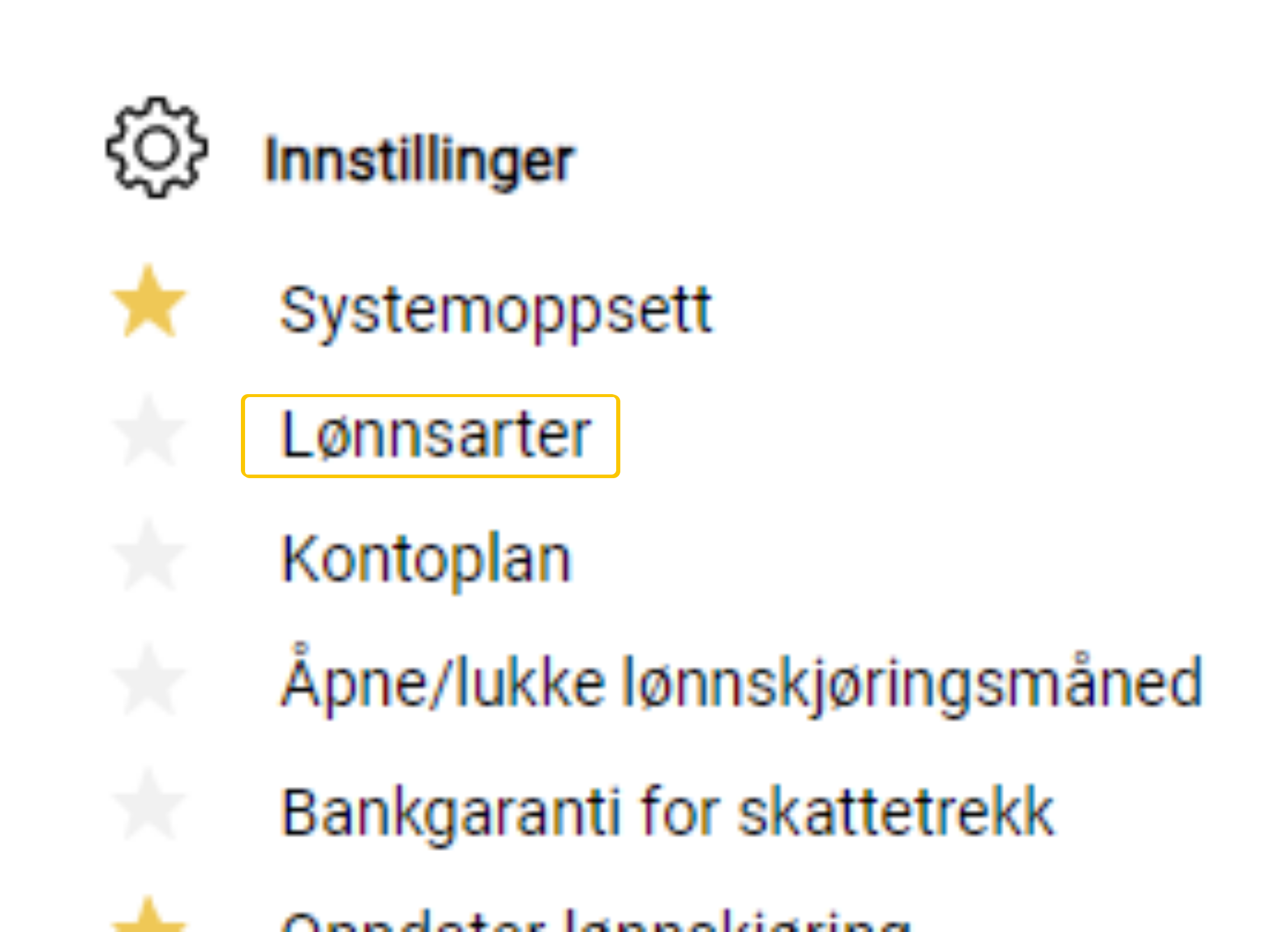 Gå til "[...]"-knappen, velg "Innstillinger --> Lønnsarter".